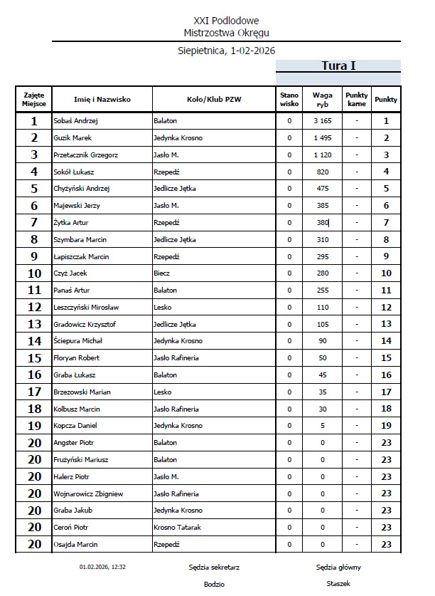 Ostateczne potwierdzenie rozegrania zawodów będzie miało miejsce do godz 12.00. w dniu 29 stycznia 2026 na stronie internetowej Okręgu PZW Krosno po zmierzeniu grubości lodu.
